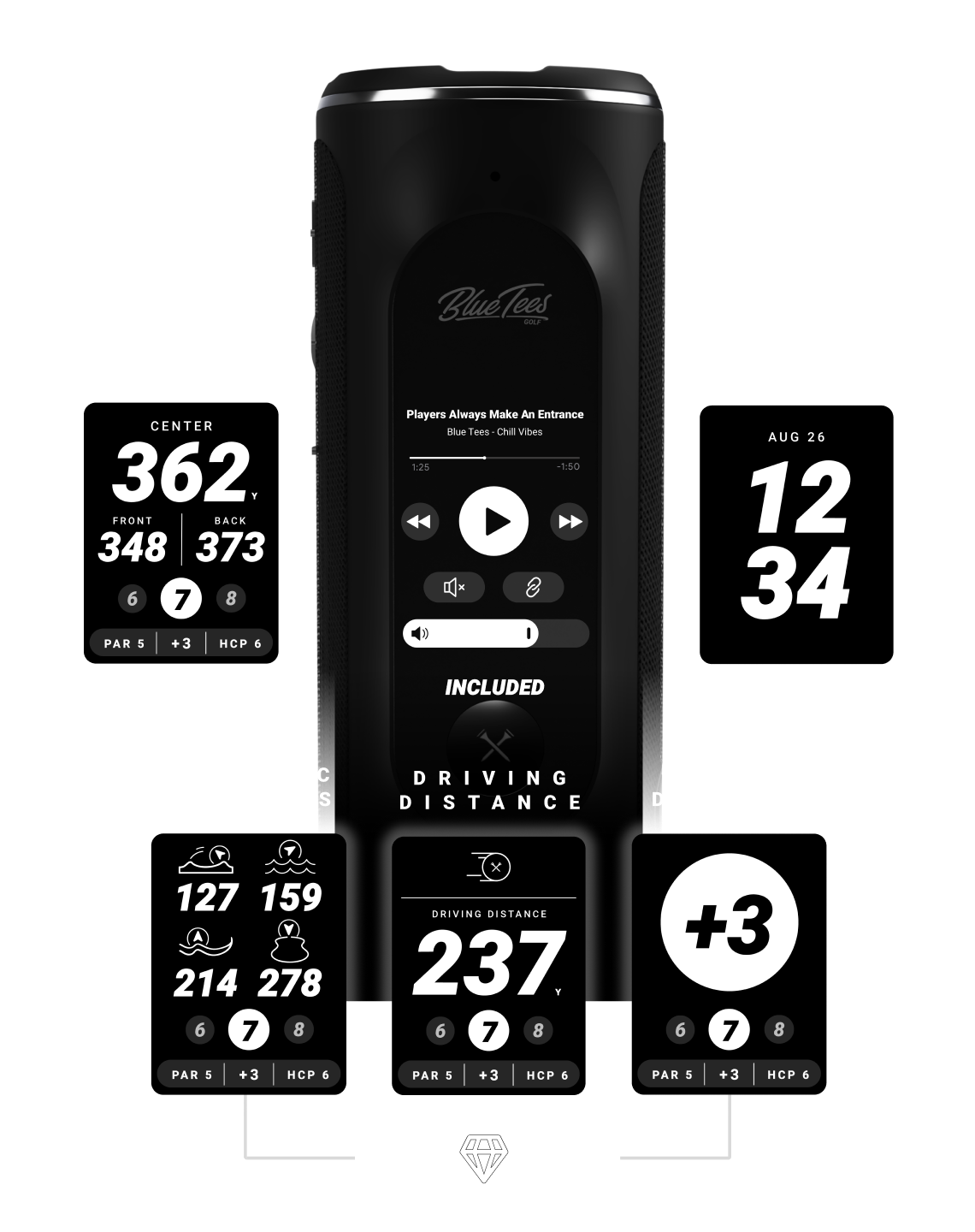 I en värld där precision är av största vikt och noggrannhet är allt, kan bara det bästa ta sig till toppen. Välkommen till golfens framtid. Möt Player+, en revolutionerande GPS-pekskärmsgolfhögtalare som drivs av Blue Tees Game App. En kraftfull högtalare till skillnad från allt du sett tidigare, få tillgång till över 40 000 banor till hands med en ljudupplevelse som inte är den här världen.